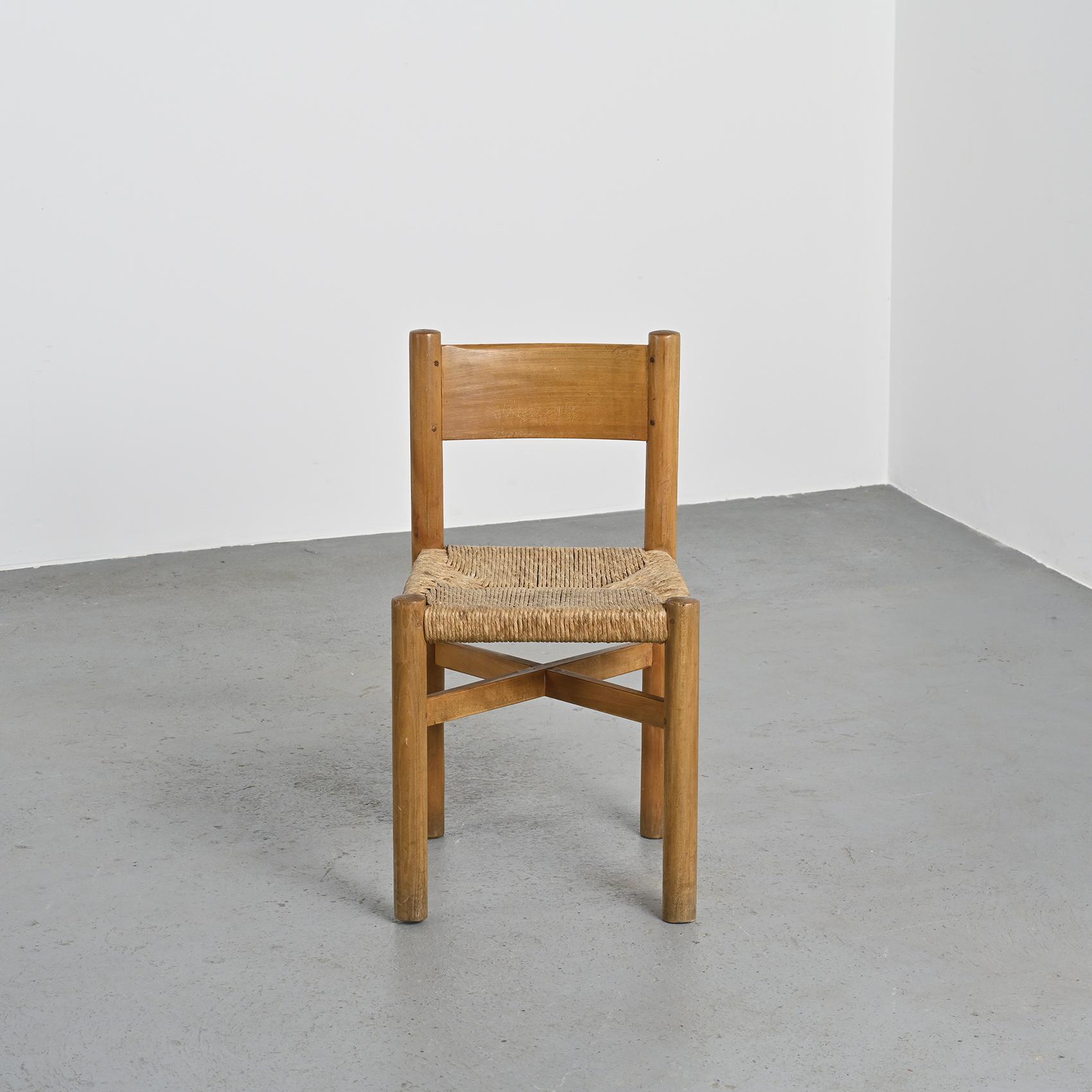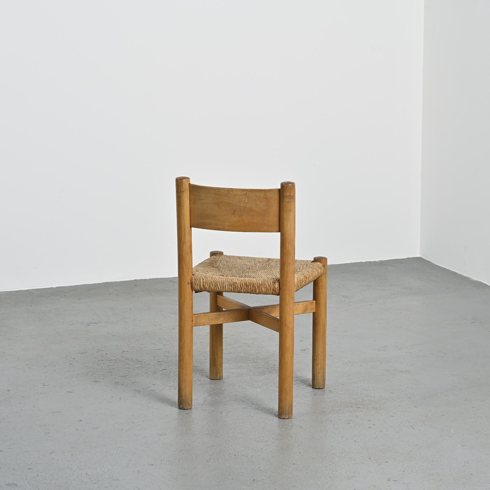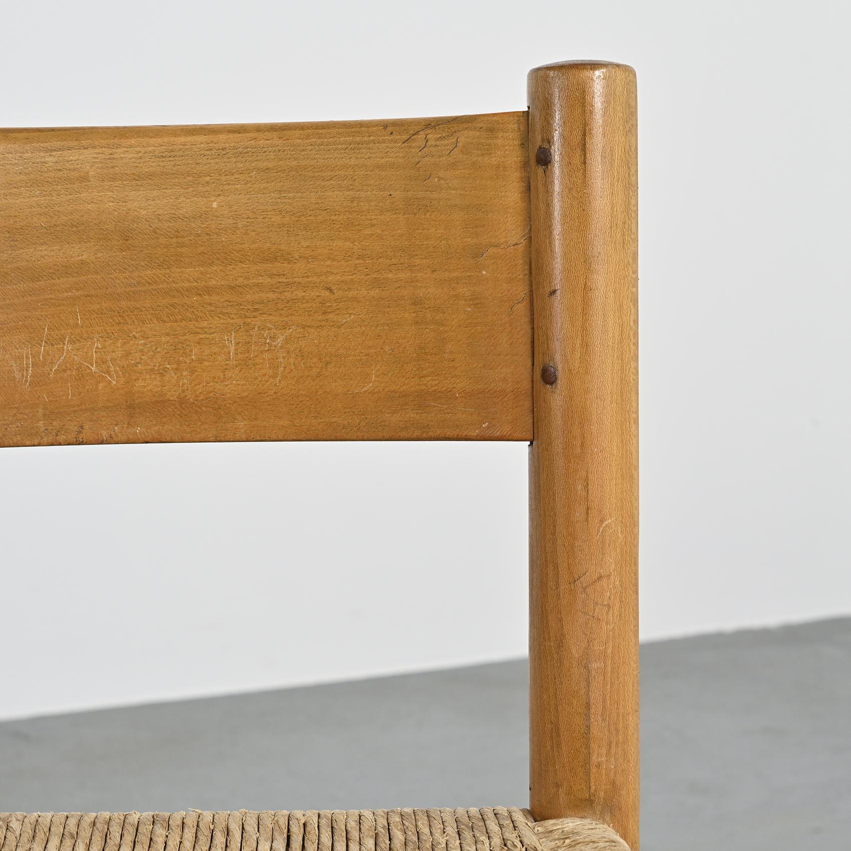 Set of hight Meribel chairs by Charlotte Perriand, designed in the 1950s to furnish the ski resort of Meribel, in the French Alps. Iconic design by Charlotte Perriand, these chairs were also to be found in her own chalet, that she started building as of 1960 on the land the city had given her in exchange for her work.