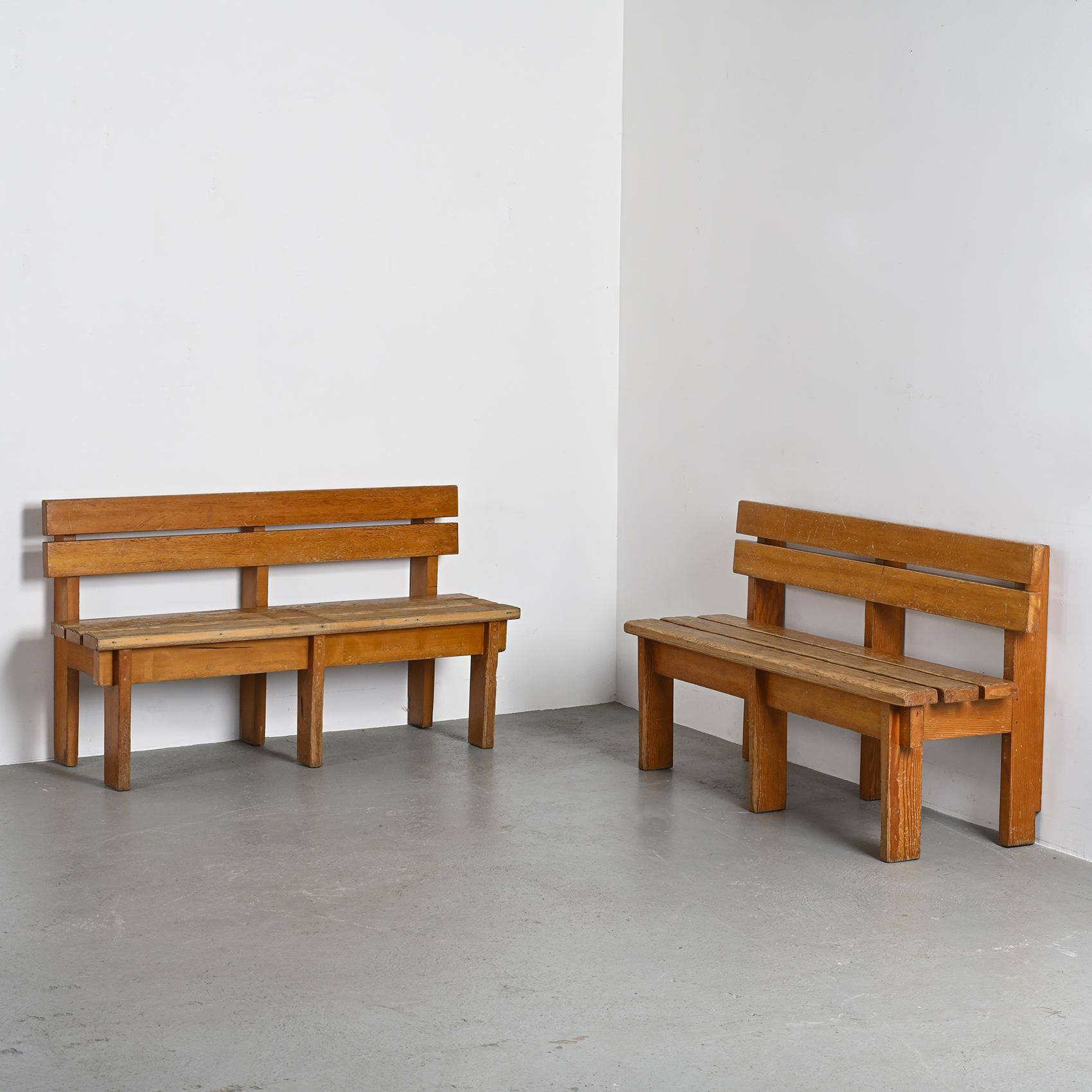 Pair of Solid Wood Benches by Christian Durupt, Courchevel, circa 1960
