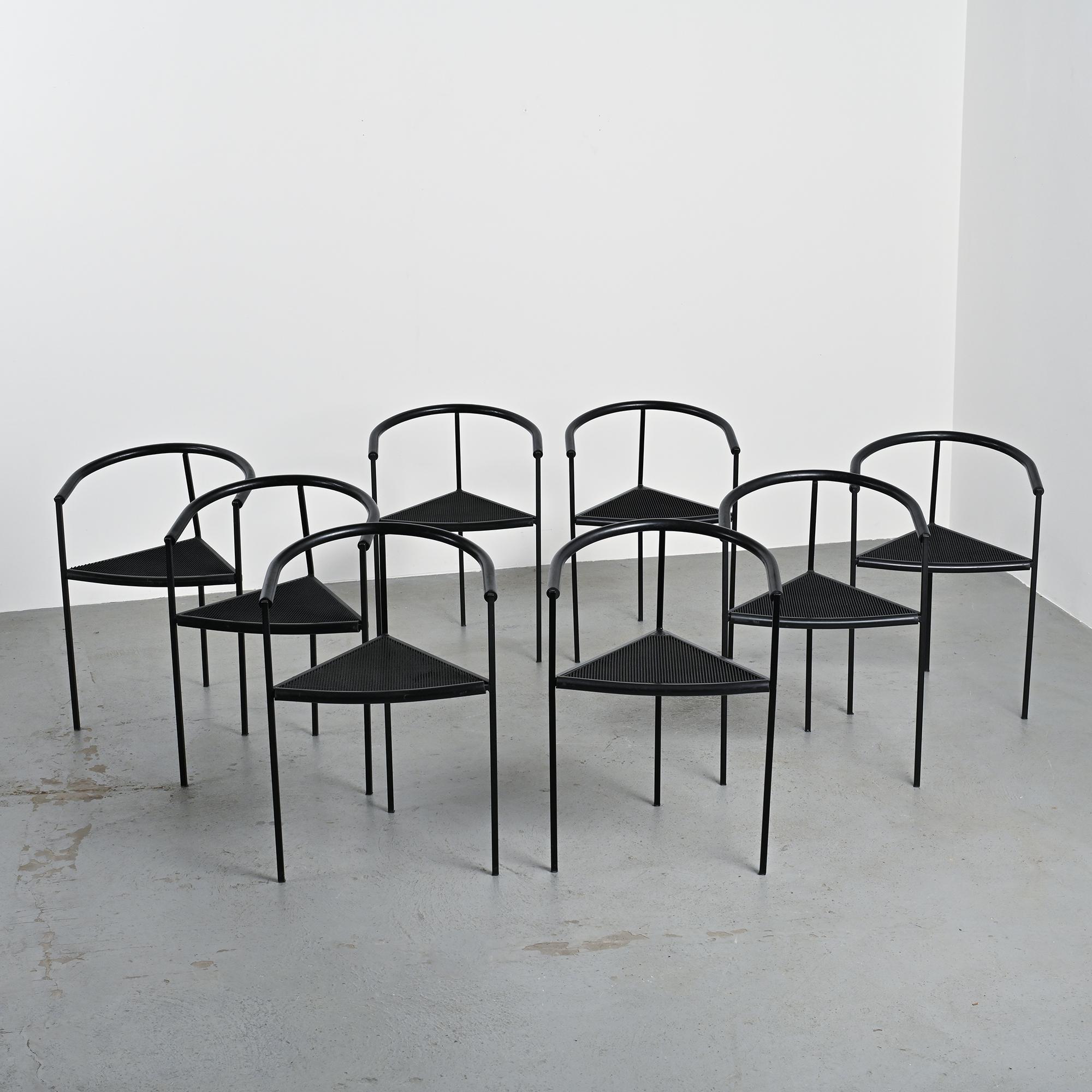 Ensemble de huit chaises modèle Millepunte, dessinées par Maurizio Peregalli et Sergio Calatroni et éditées par Zeus Noto au milieu des années 1980.