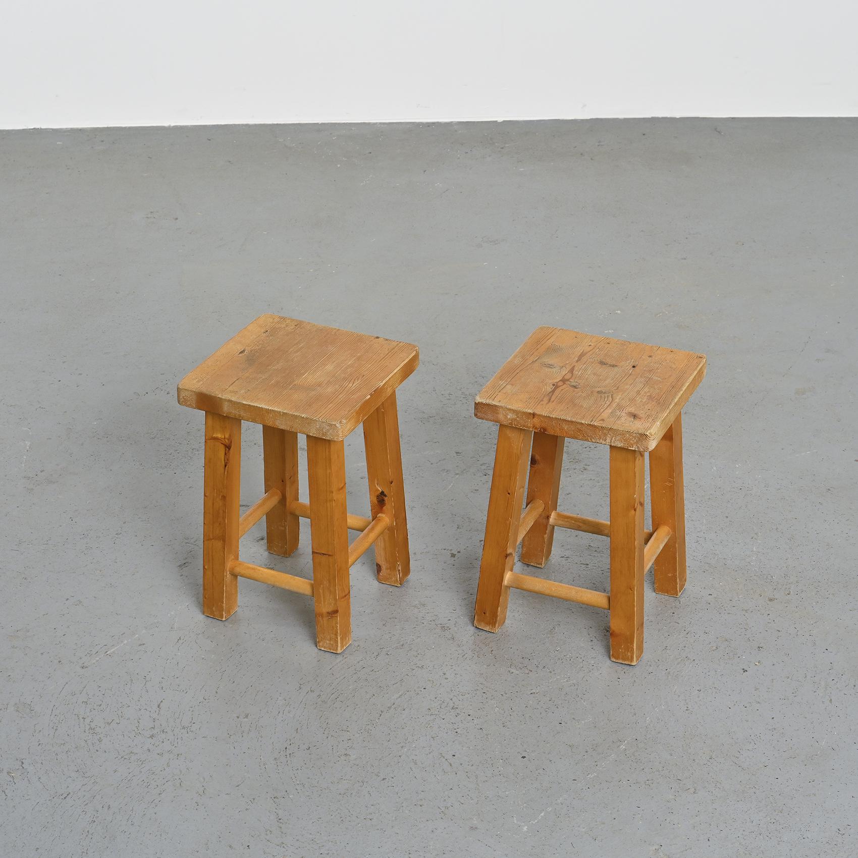 Paire de tabourets en bois, La Pierra Menta, 1979