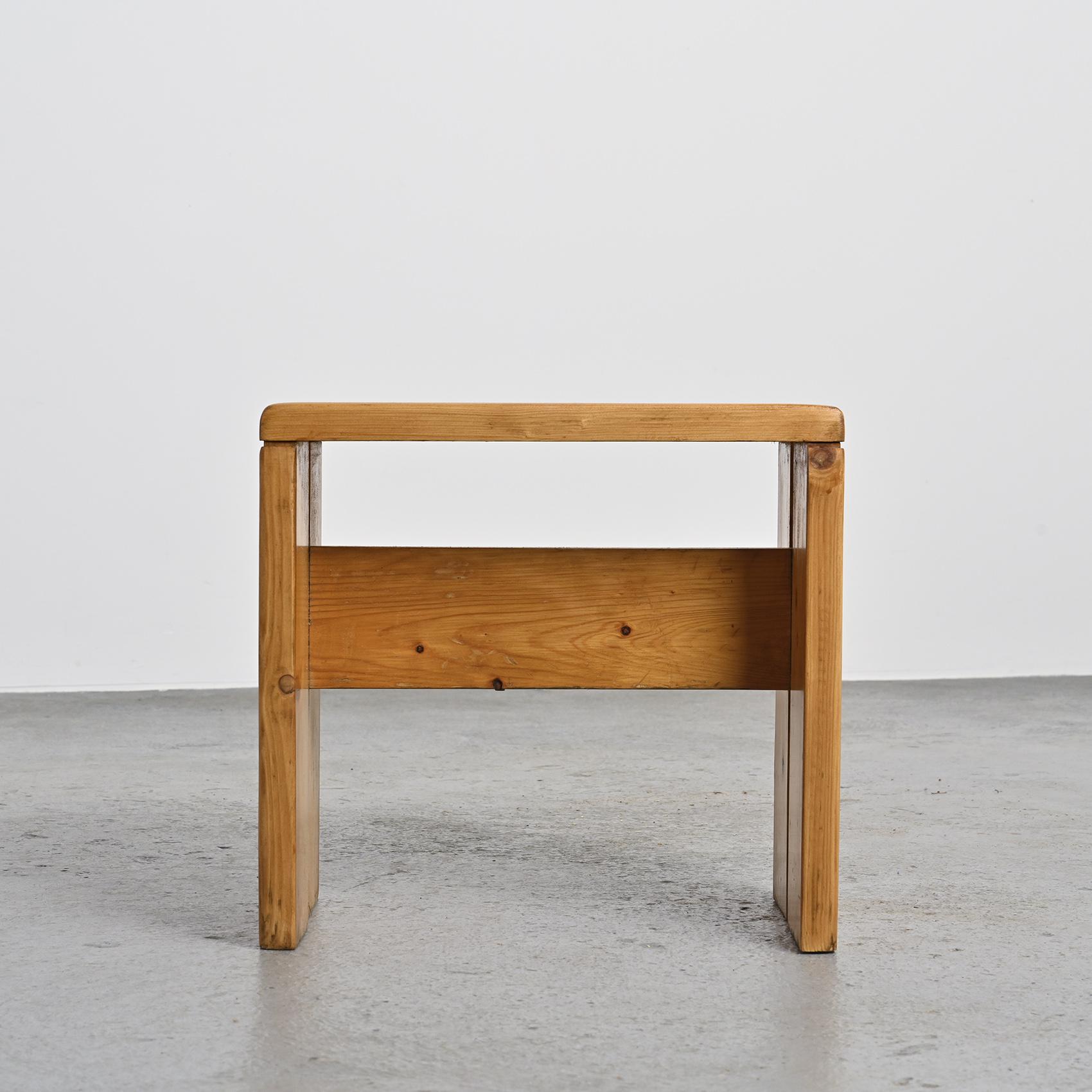 Tabouret en forme de U inversé en pin massif. Modèle sélectionné pour la station de ski les Arcs 1800.