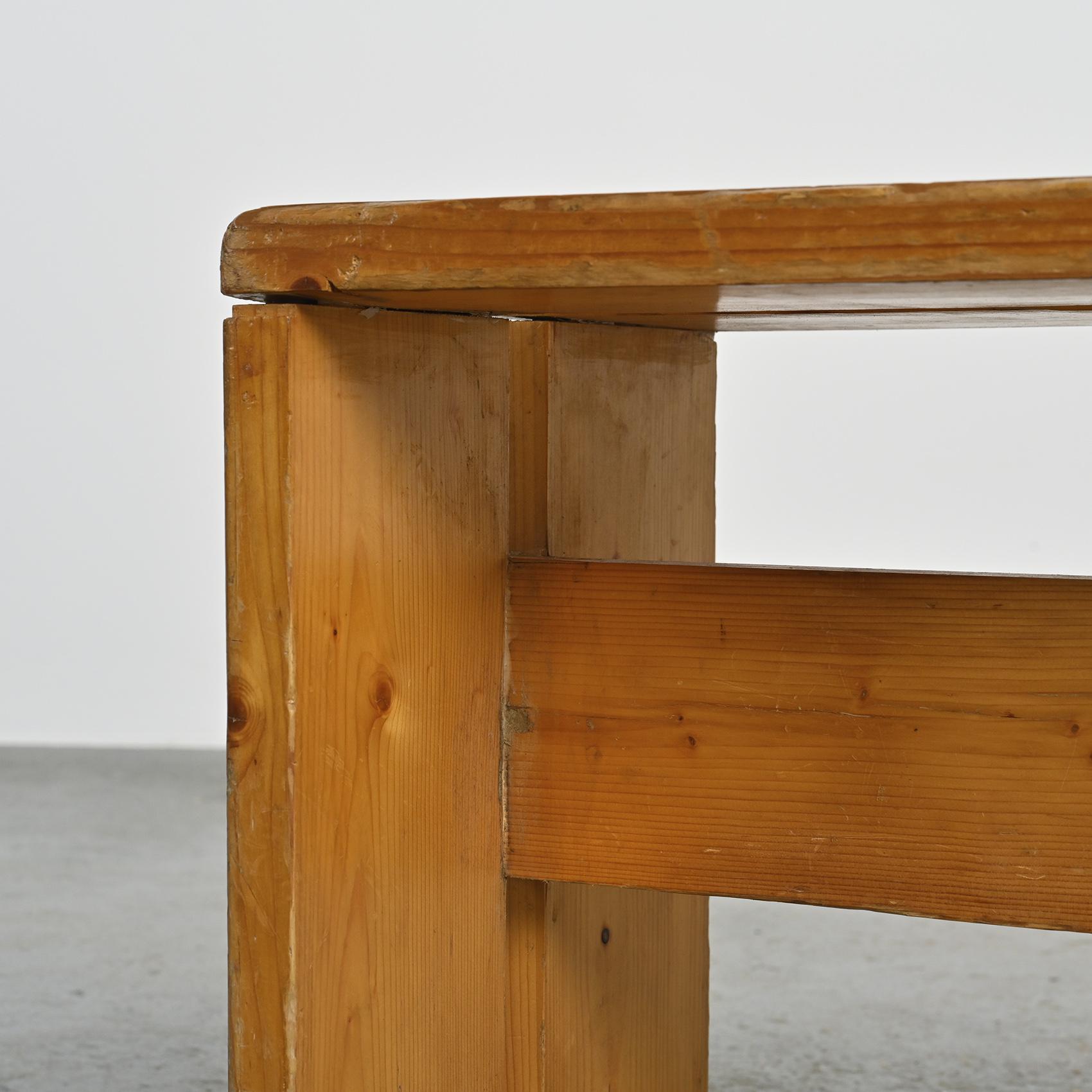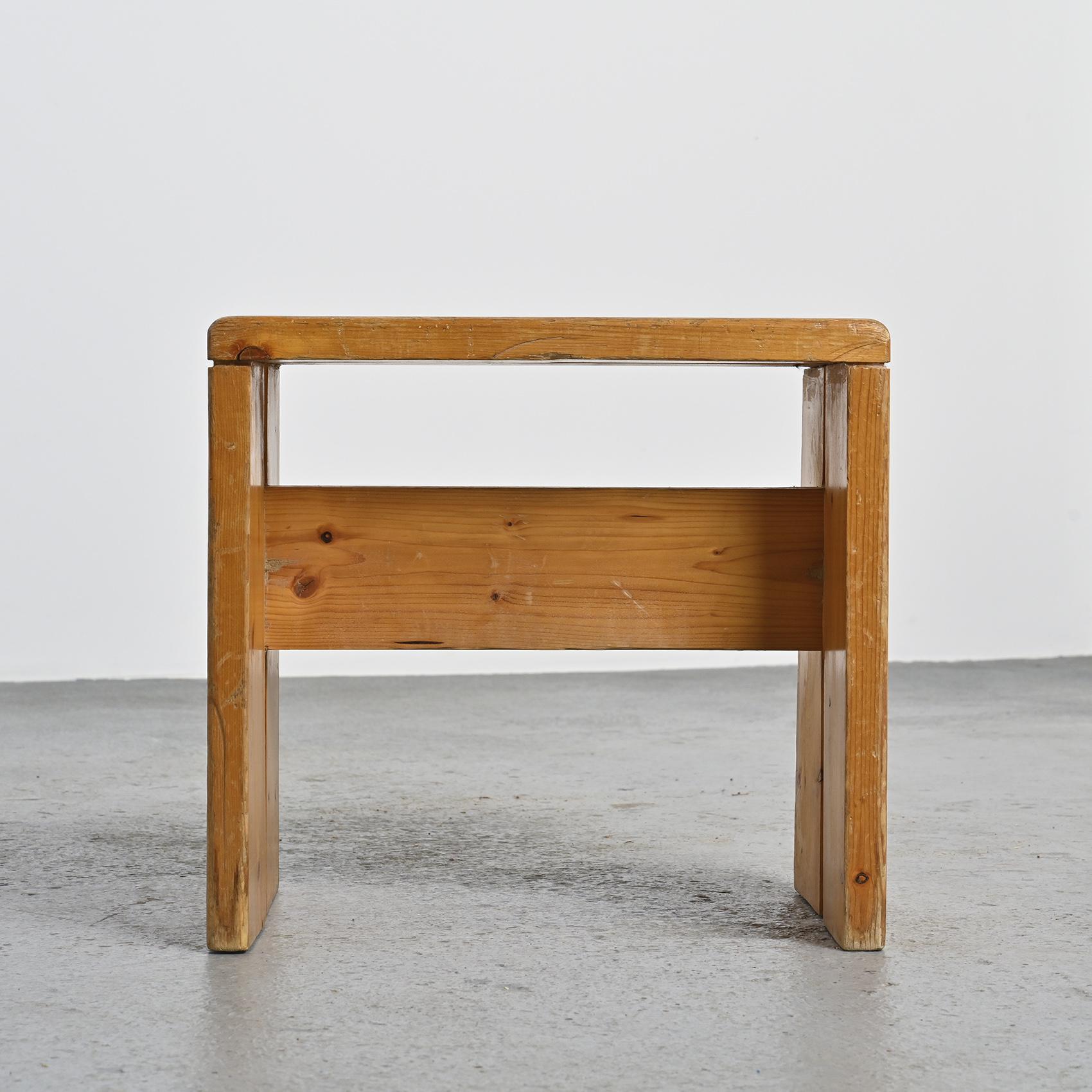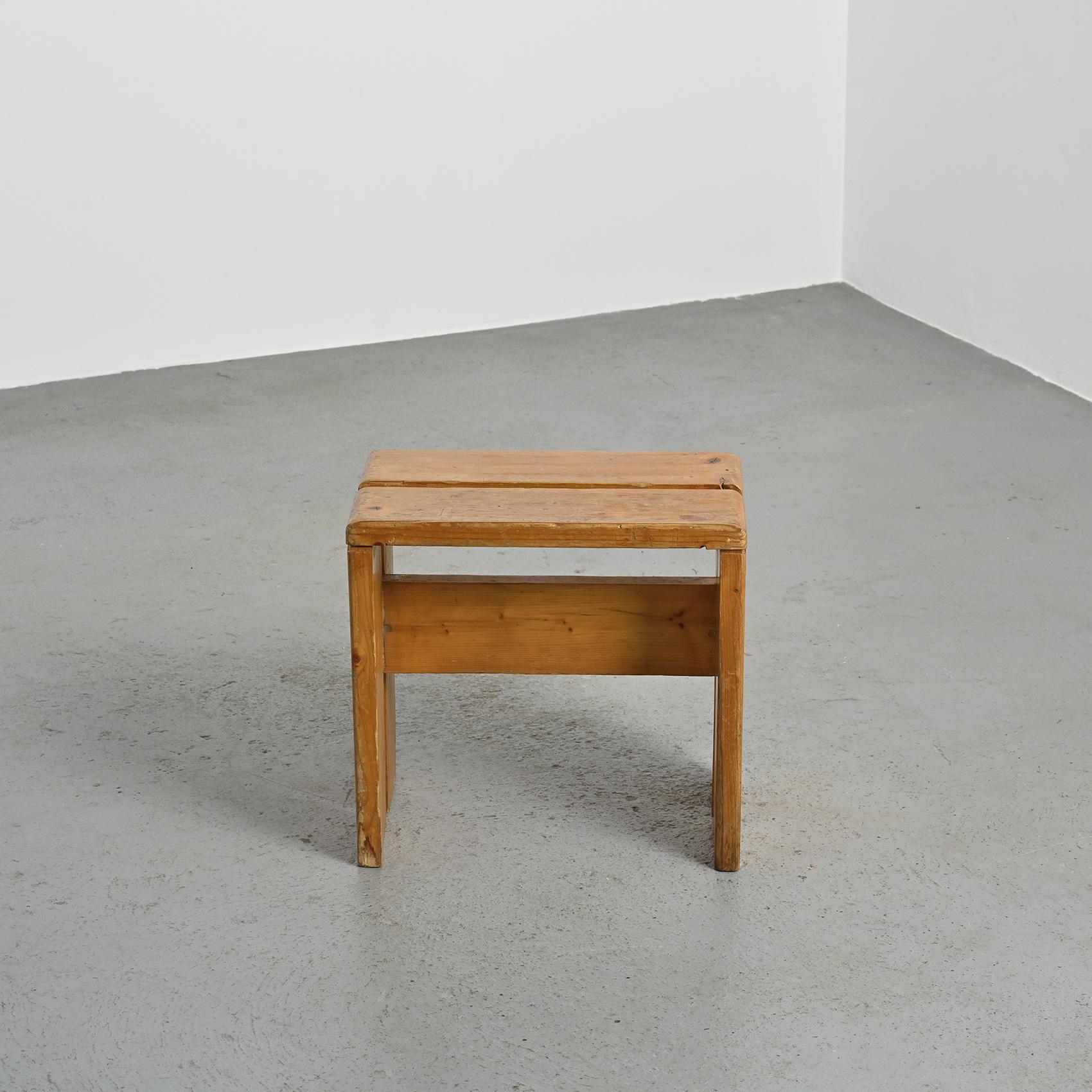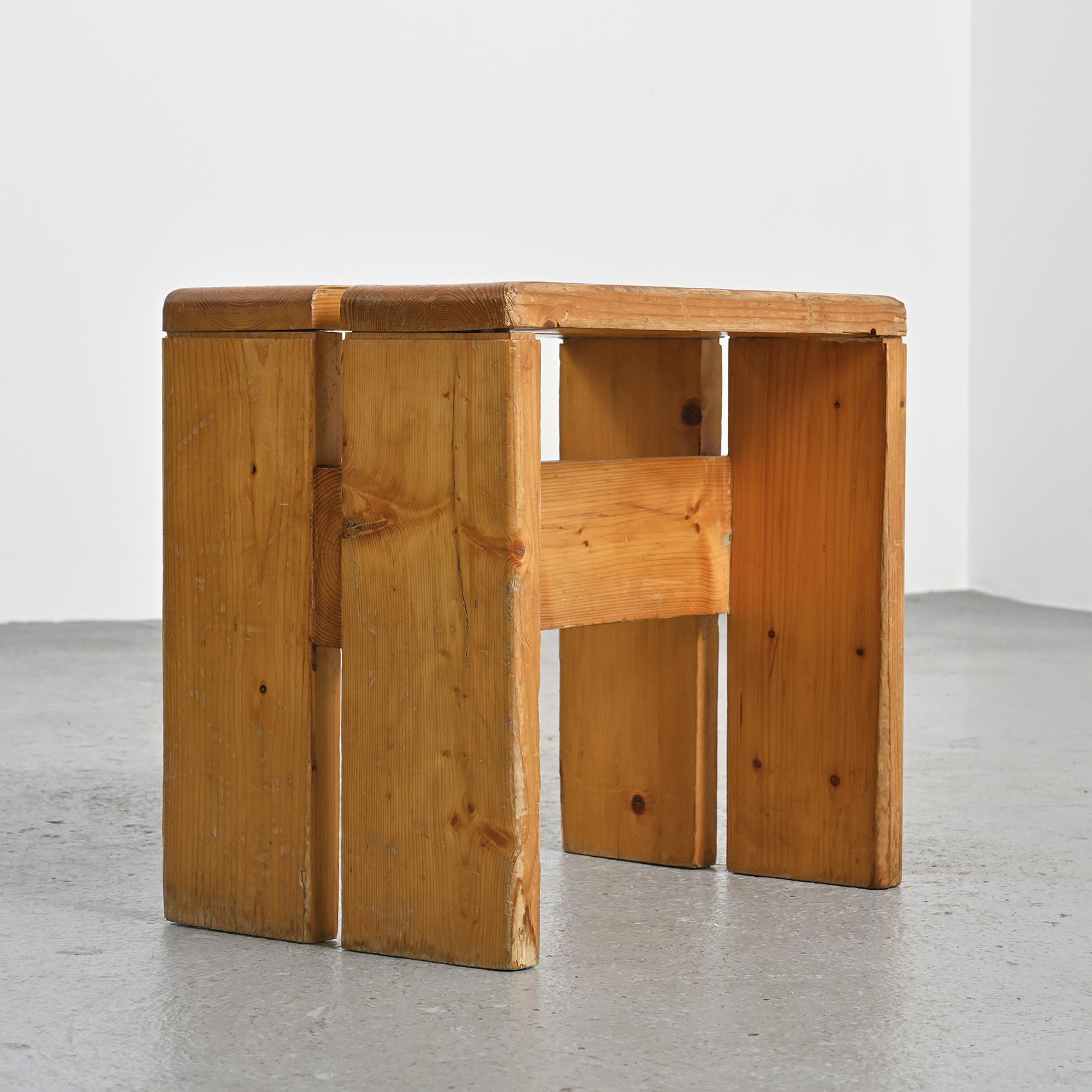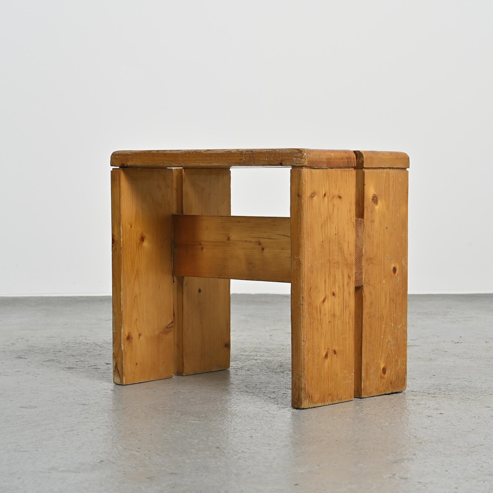 Tabouret en forme de U inversé en pin massif. Modèle sélectionné pour la station de ski les Arcs 1800.
