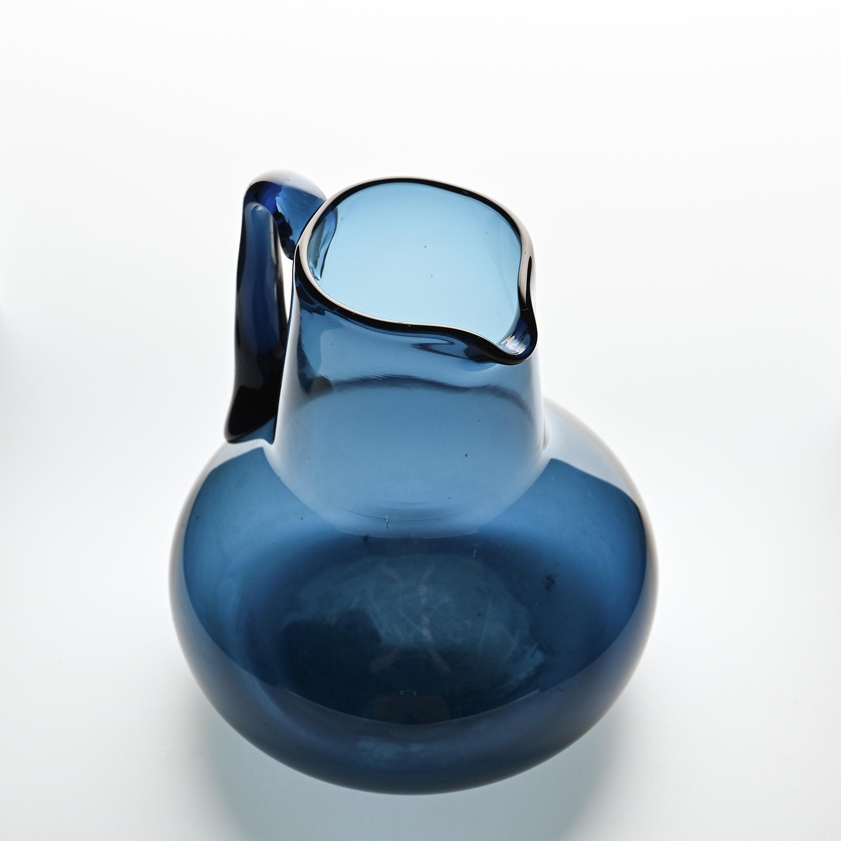 Cruche en verre soufflé bleu par Claude Morin, Dieulefit circa 1975