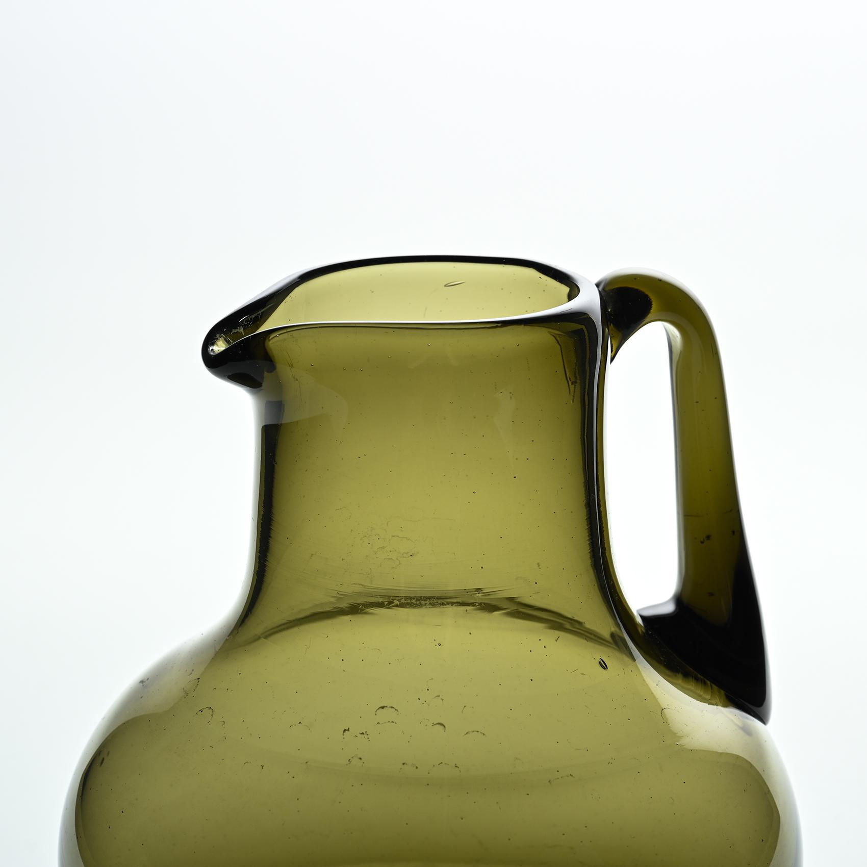 Cruche en verre soufflé vert olive par Claude Morin, Dieulefit 1976