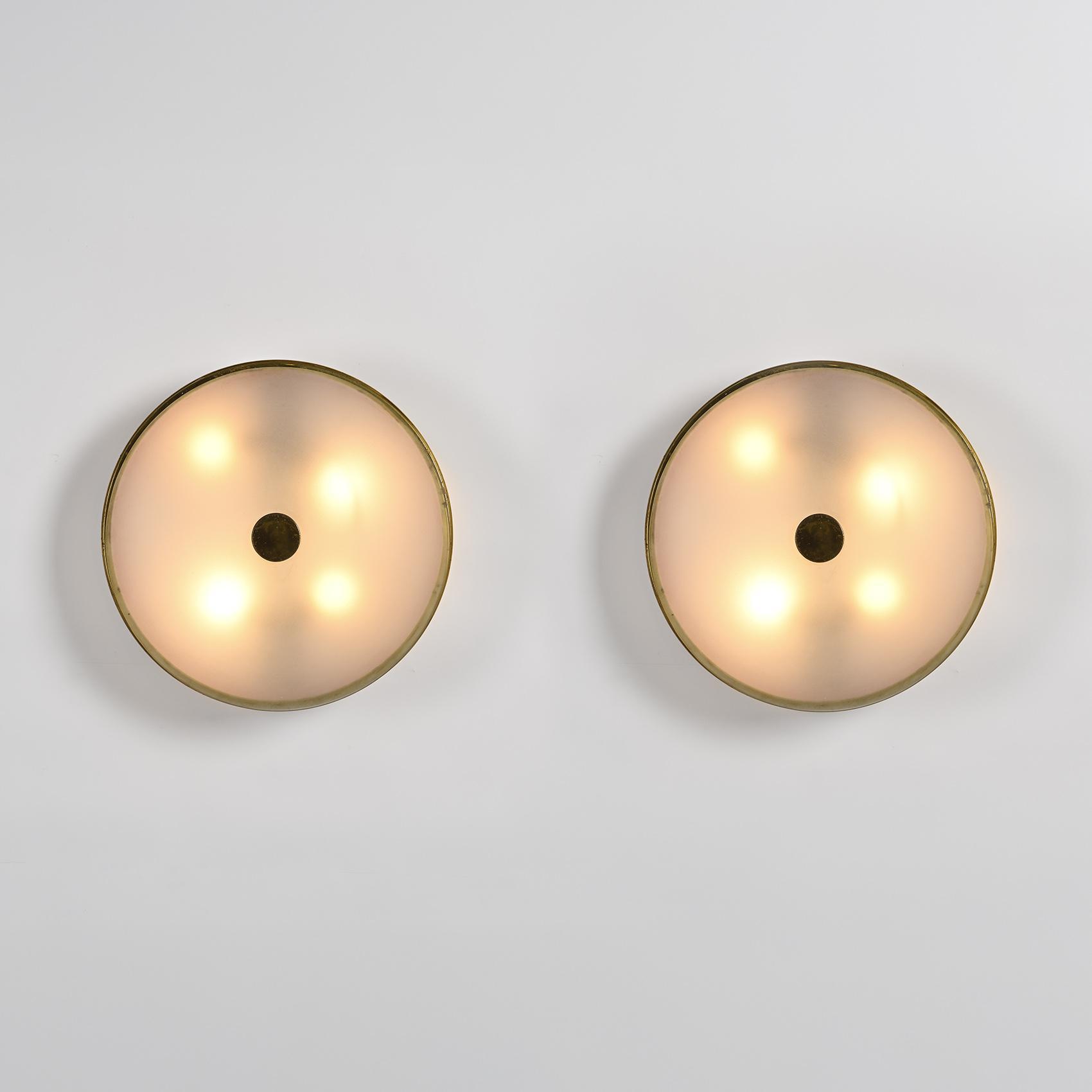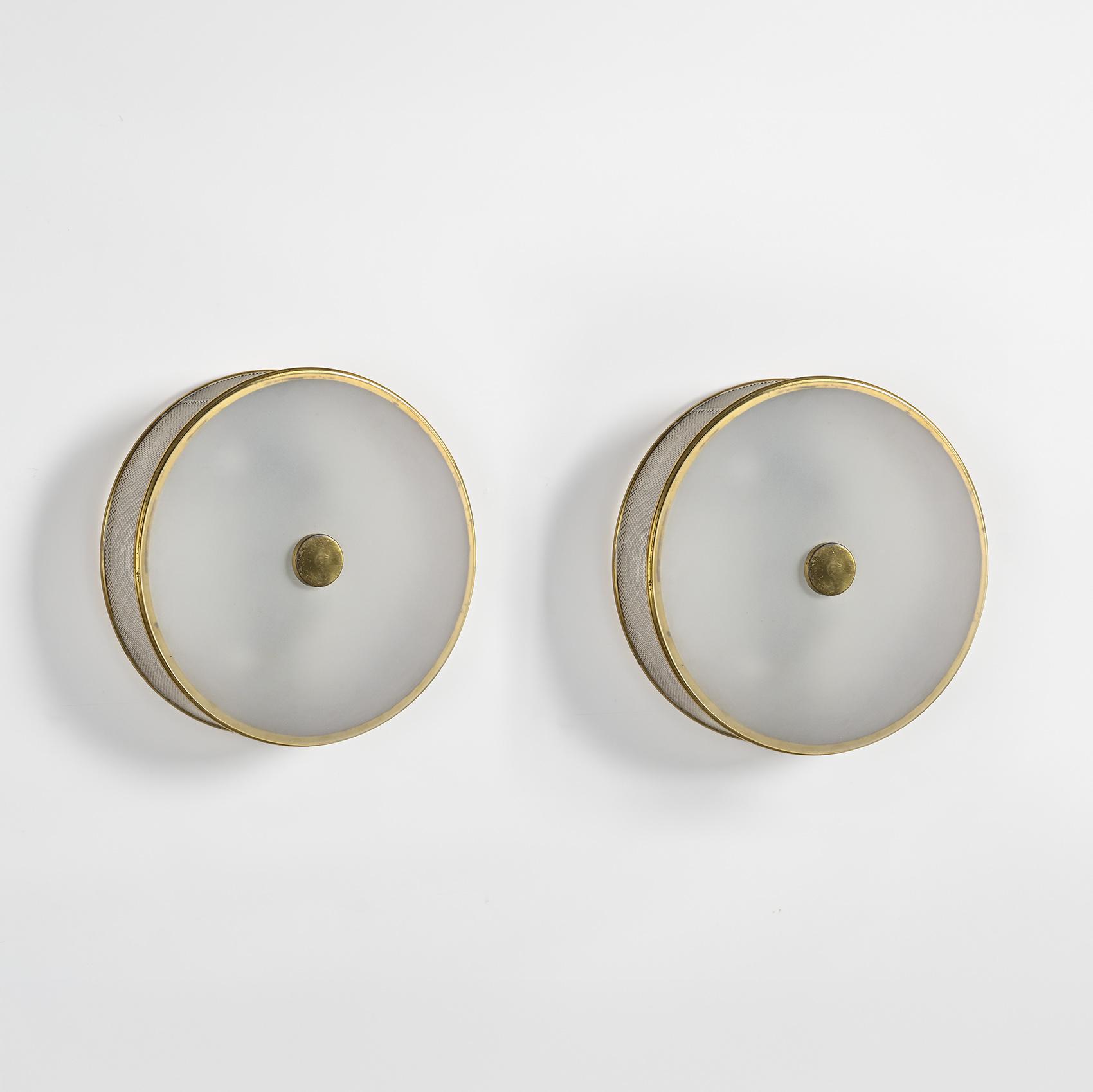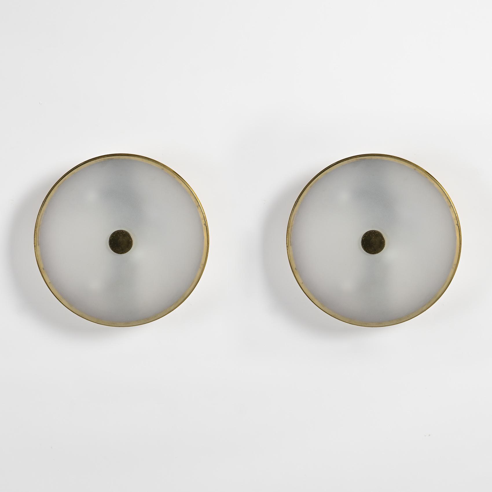 Paire d'appliques ou plafonniers circulaires éditées par la Maison Lunel vers 1955.