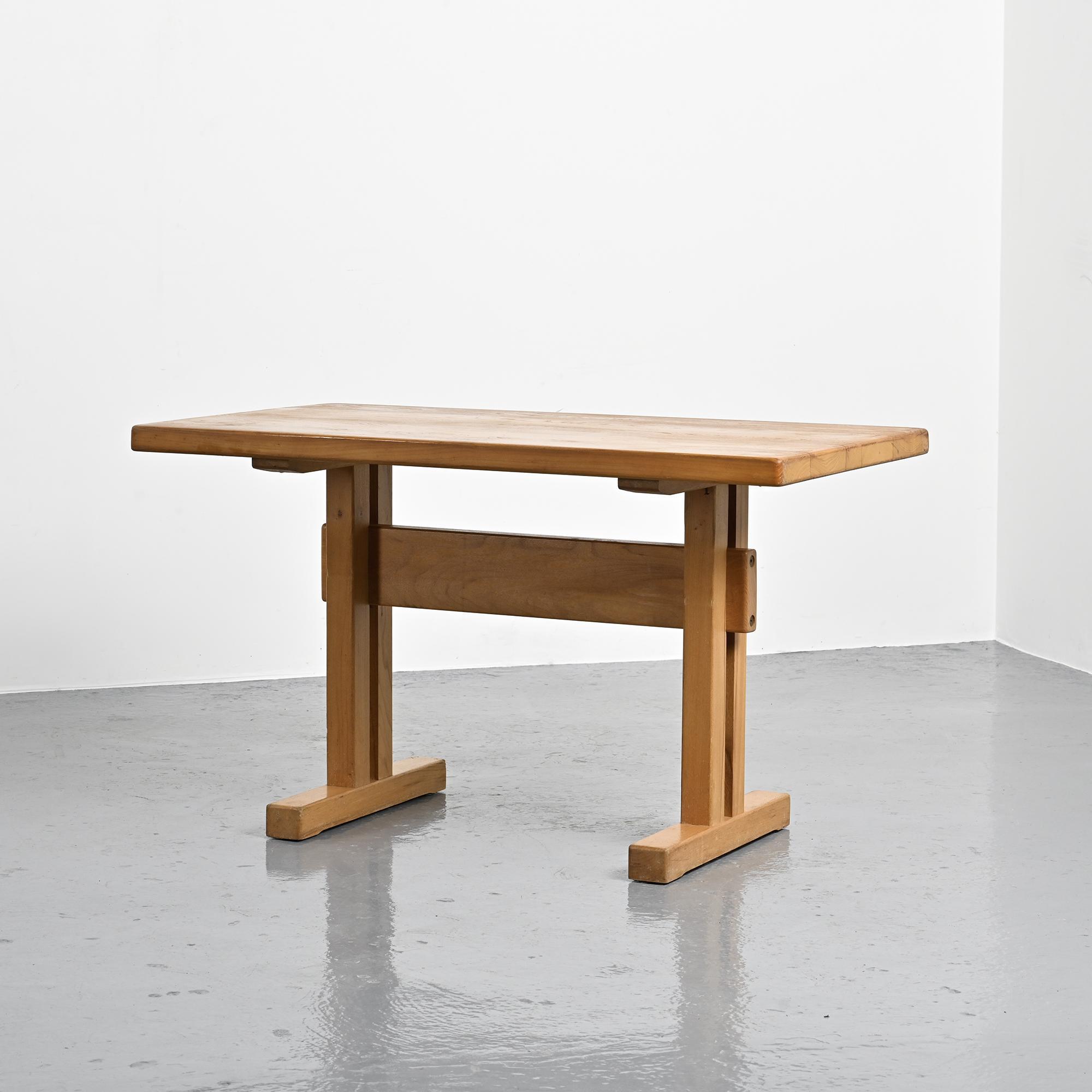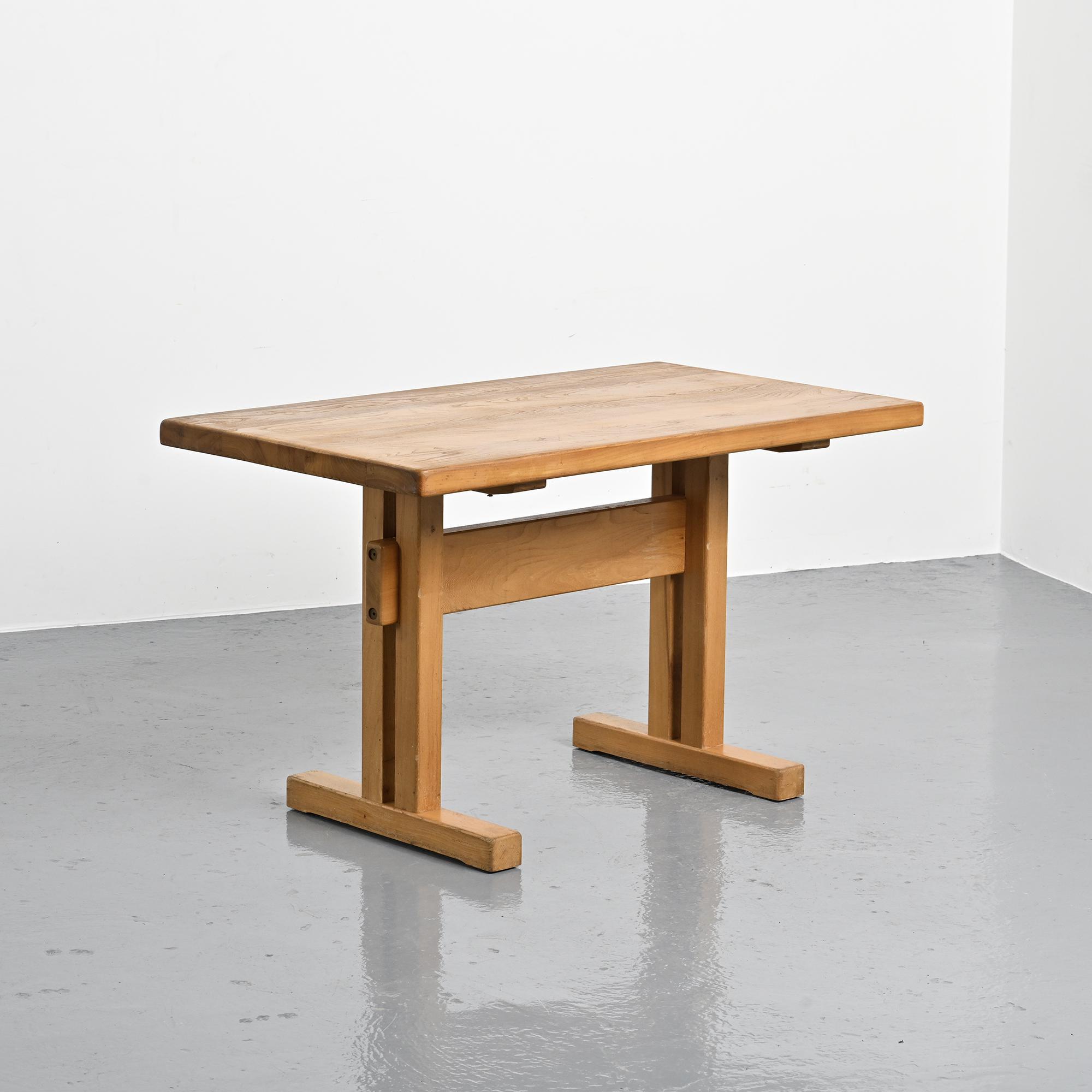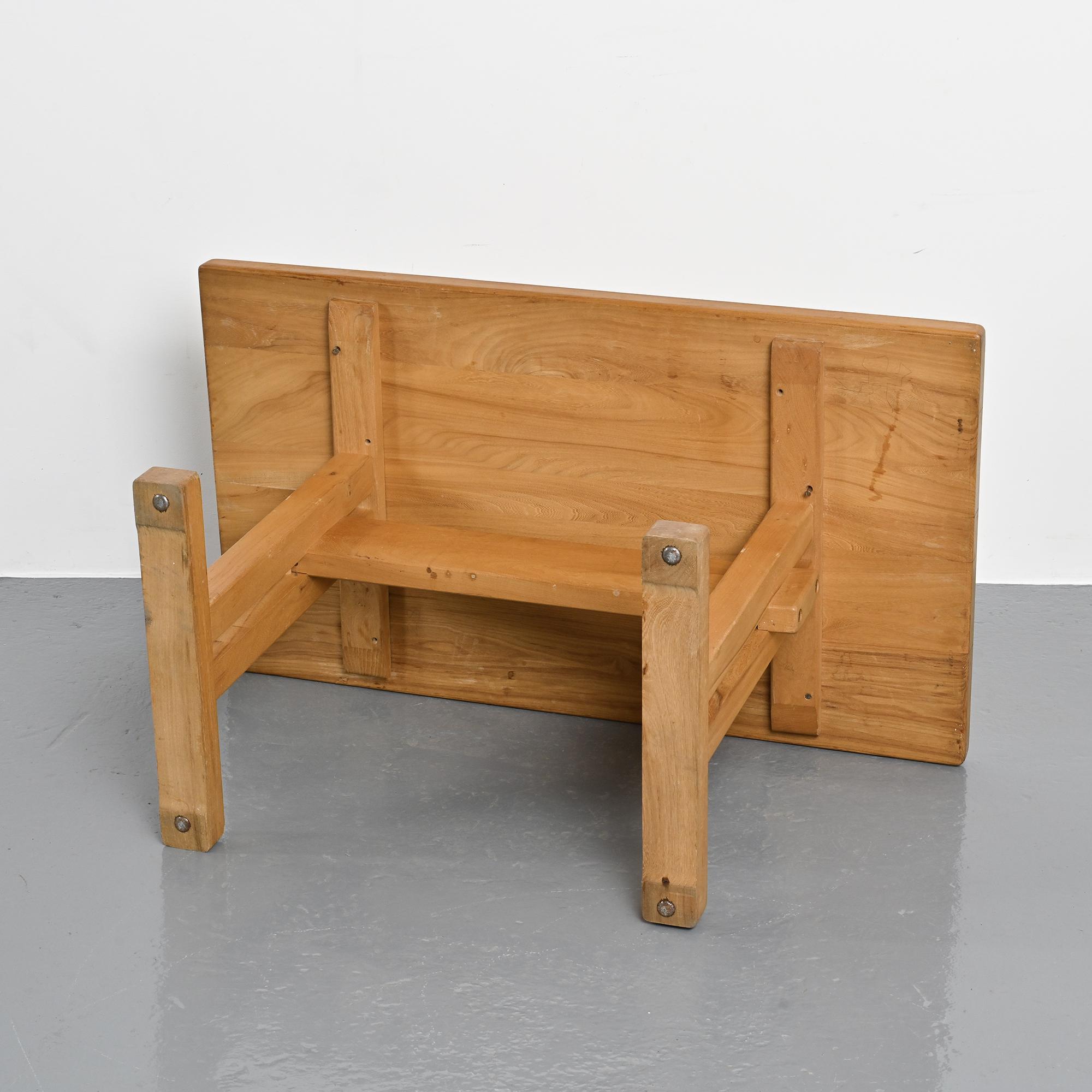Table en orme massif des Arcs par Charlotte Perriand, années 1970