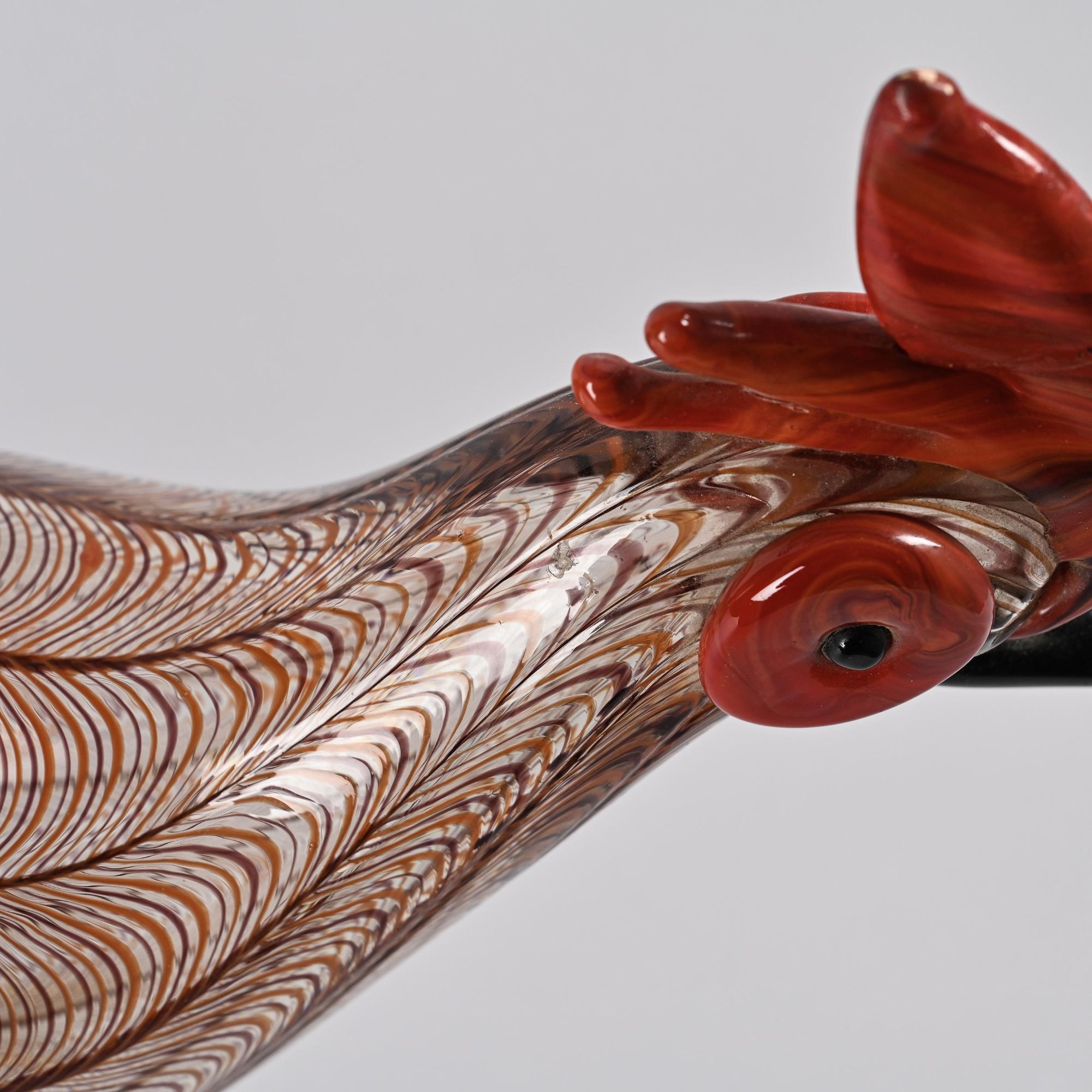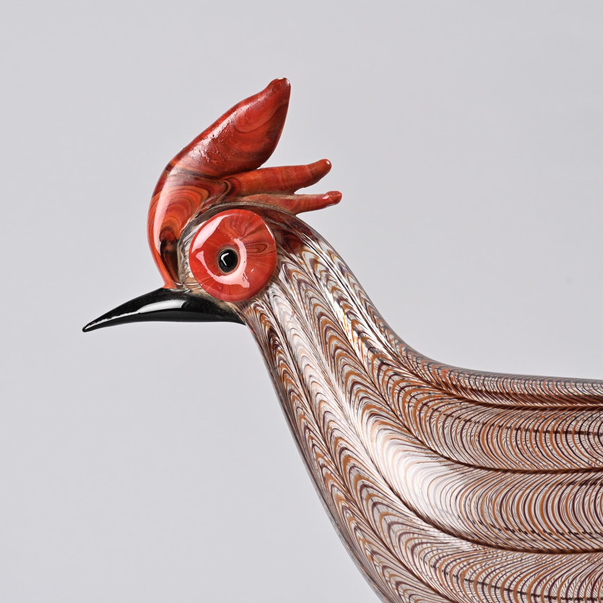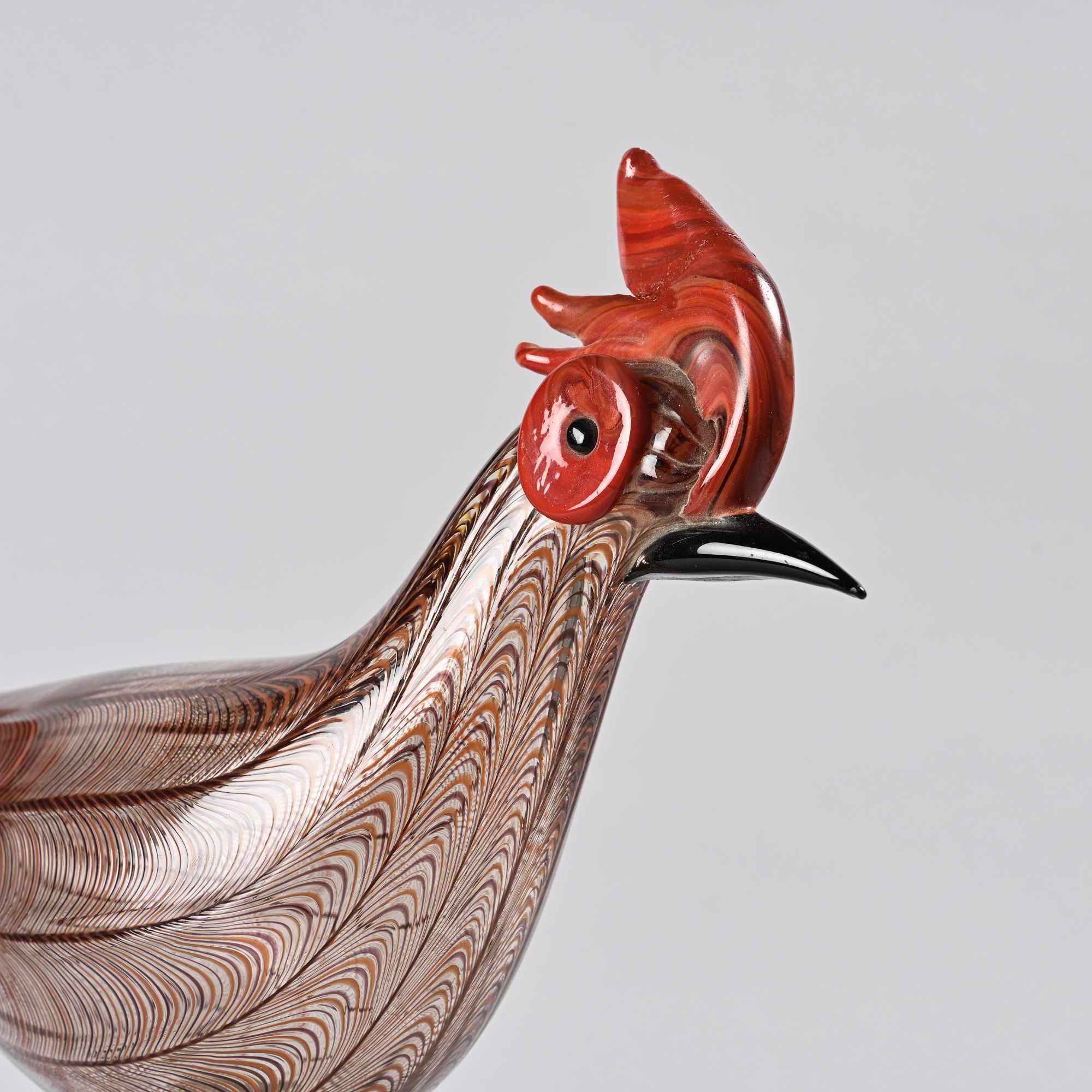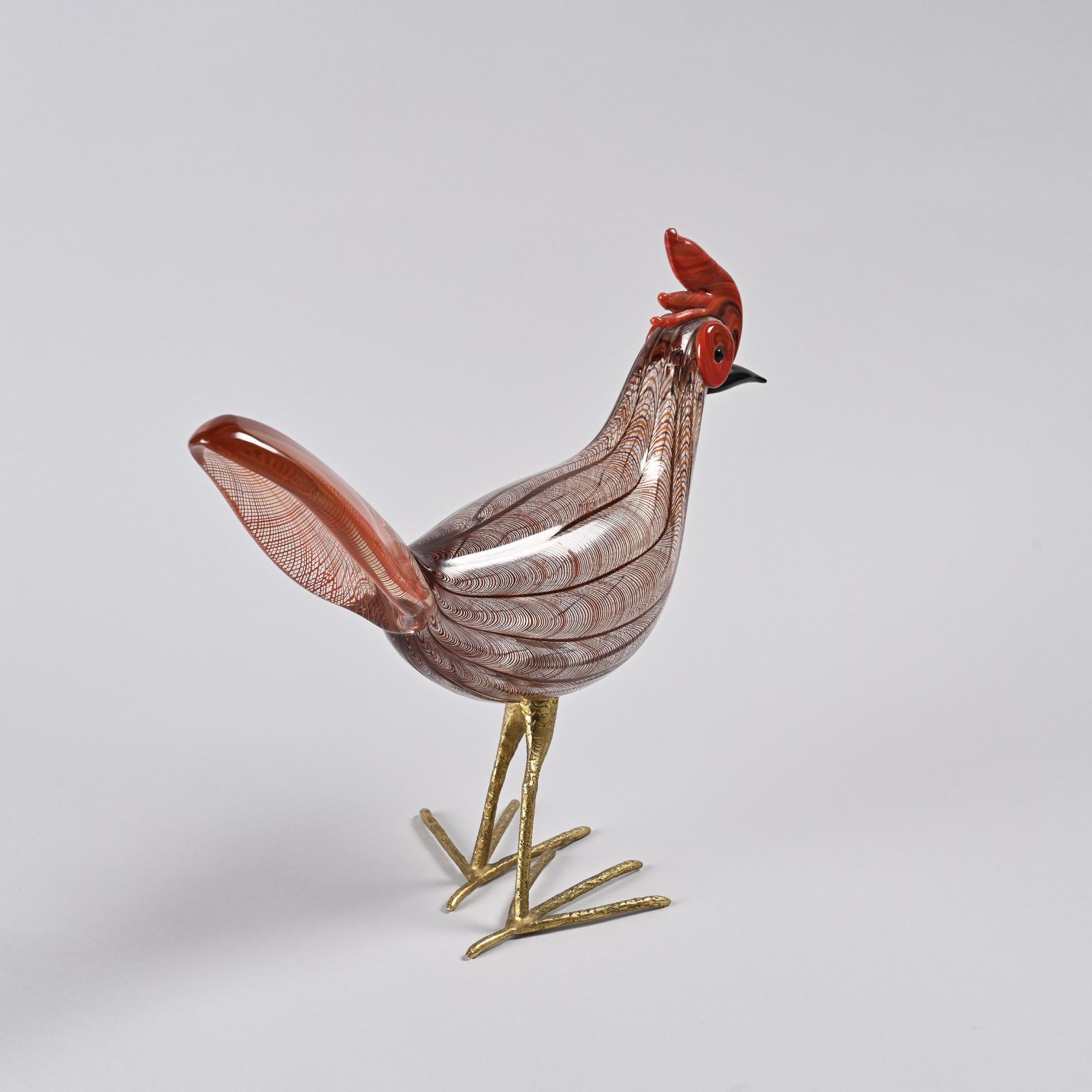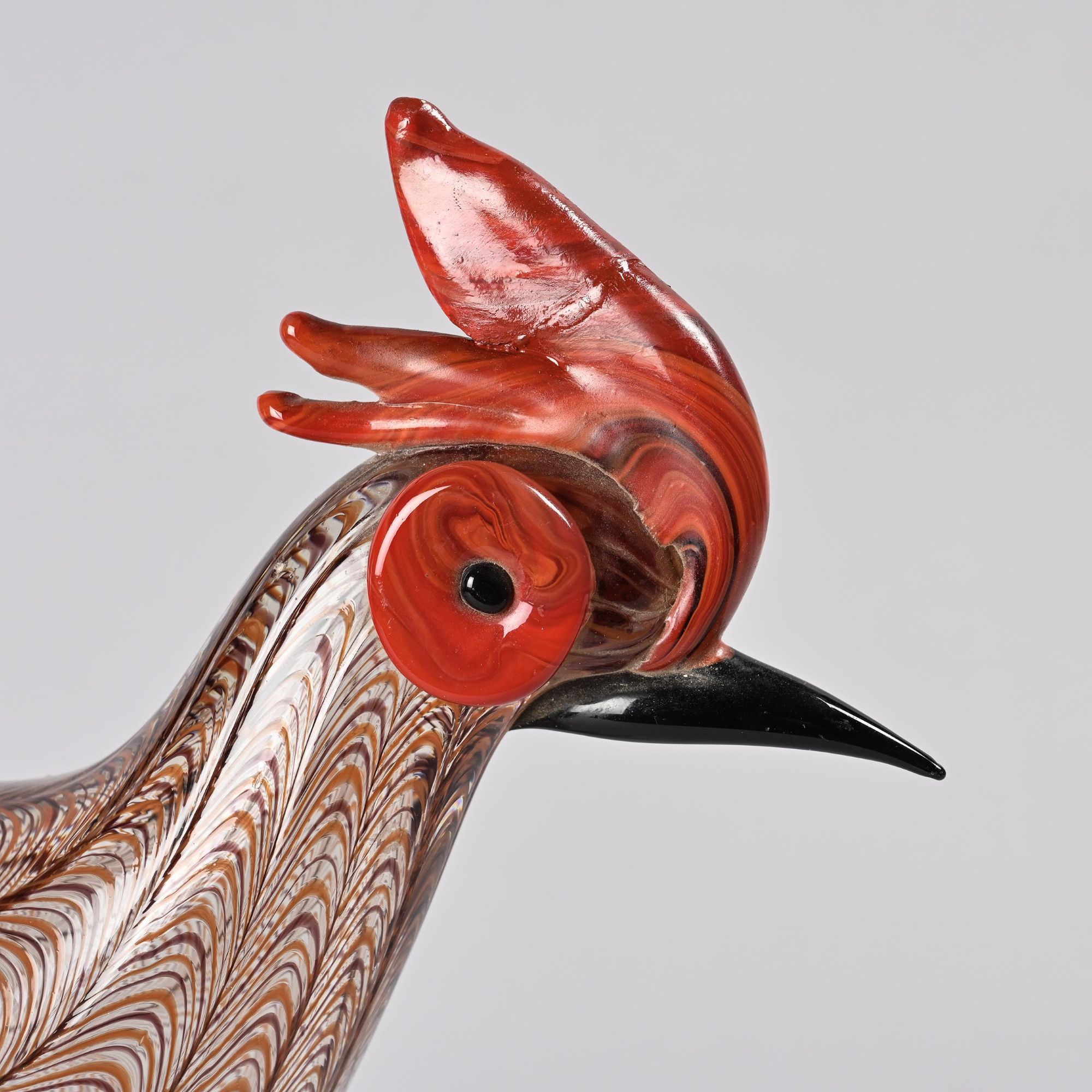Sculpture depicting a rooster, made of blown and filigree Murano glass by master glassmaker Licio Zanetti in the 1970s.