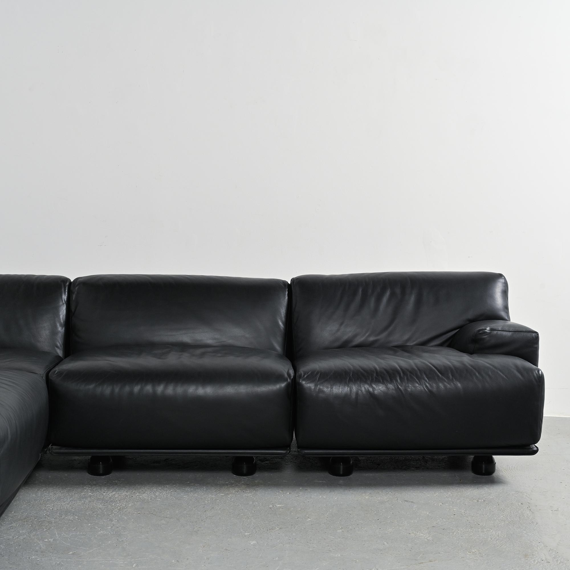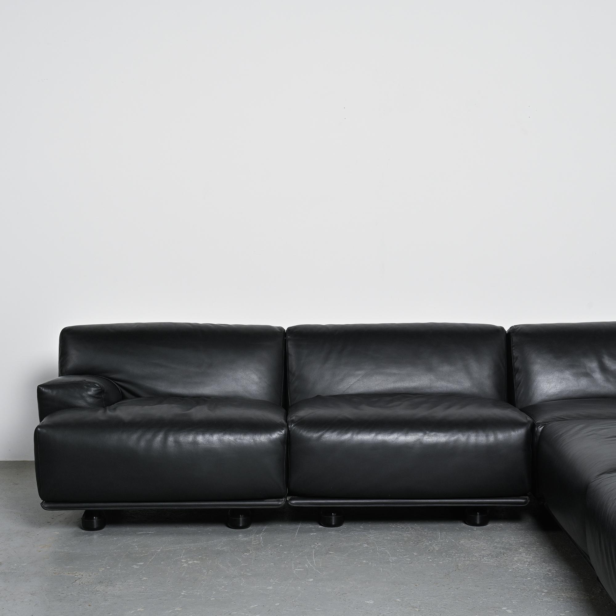 Fiandra modular black leather sofa, Vico Magistretti, Cassina, circa 1980