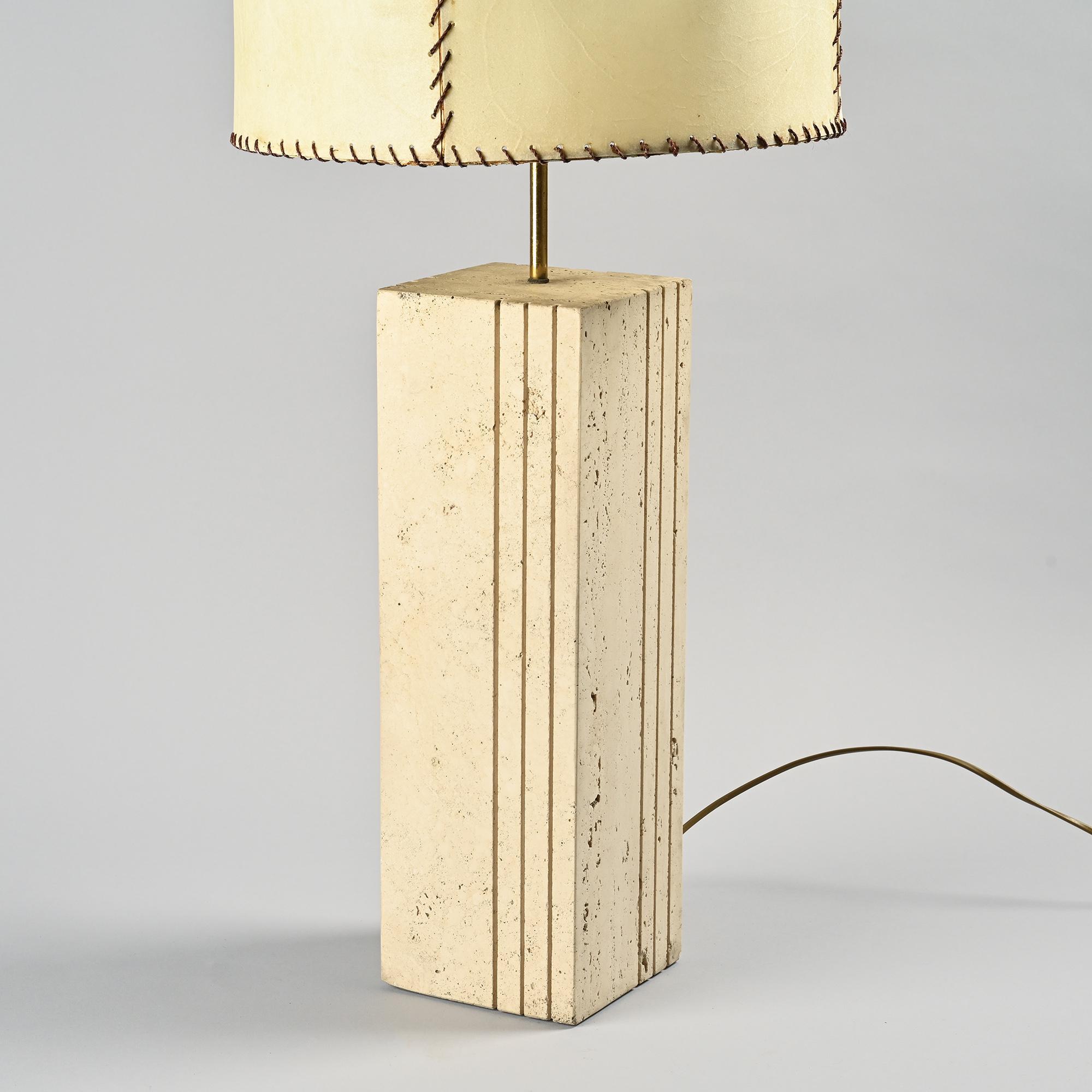 Travertine and parchment lamp, Italy, circa 1970