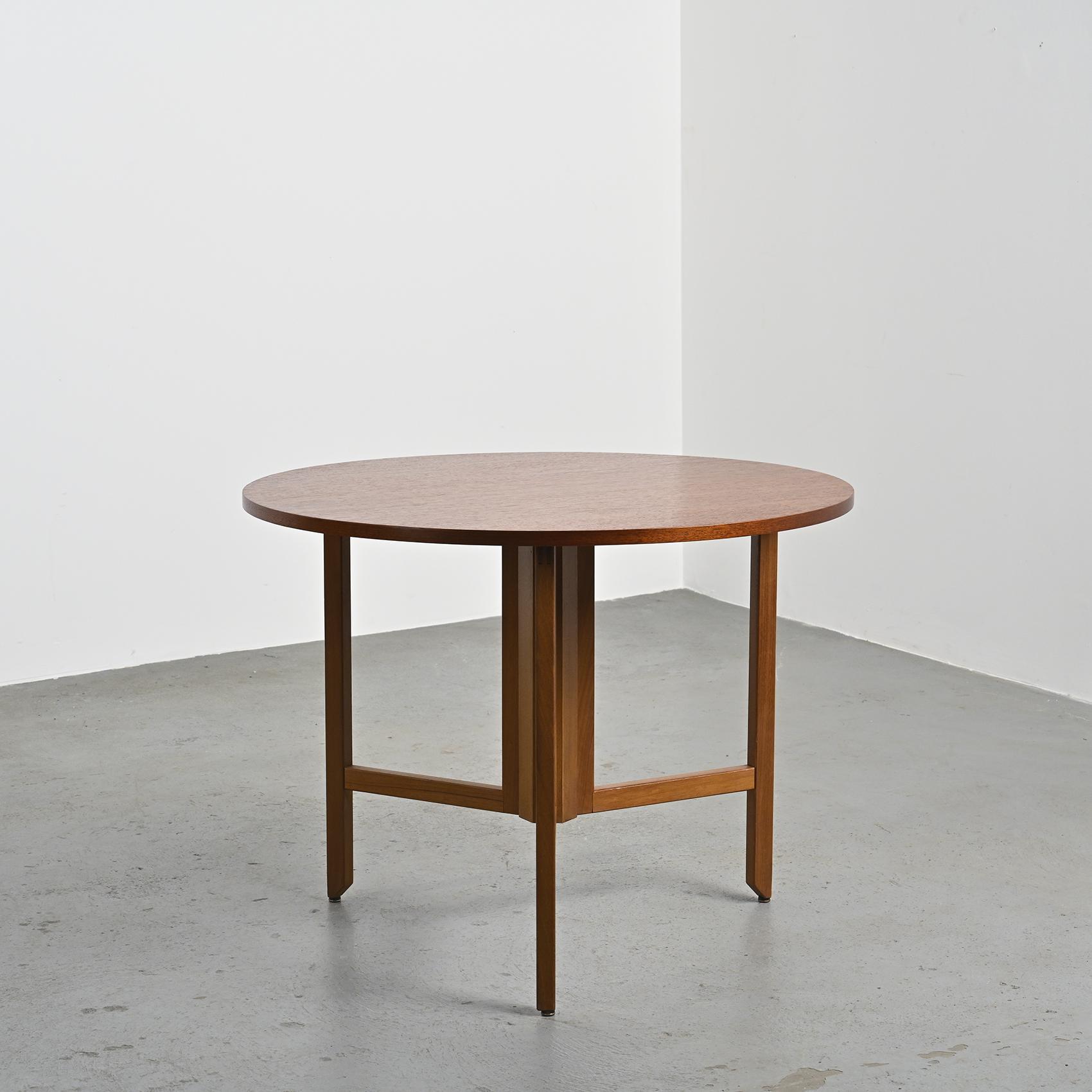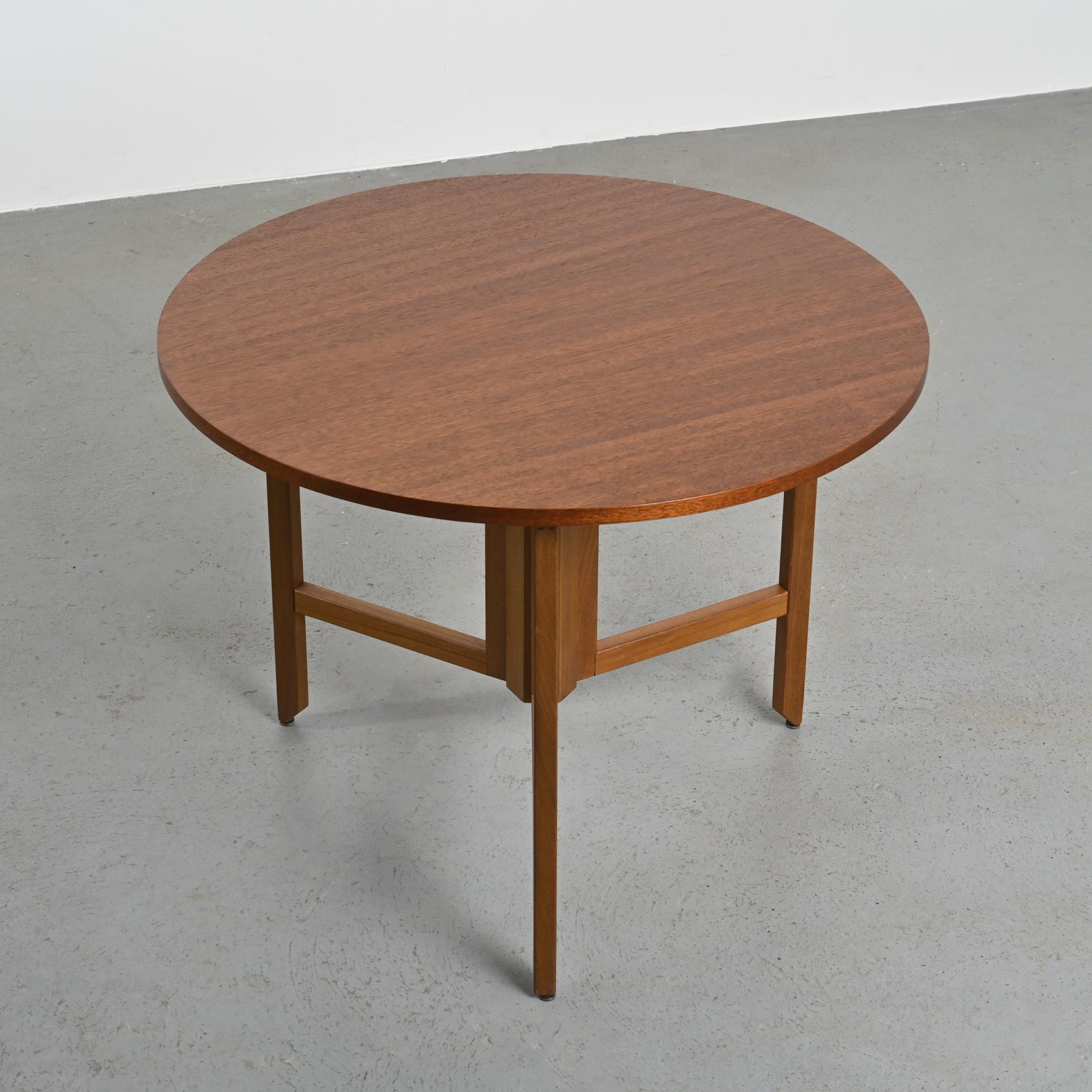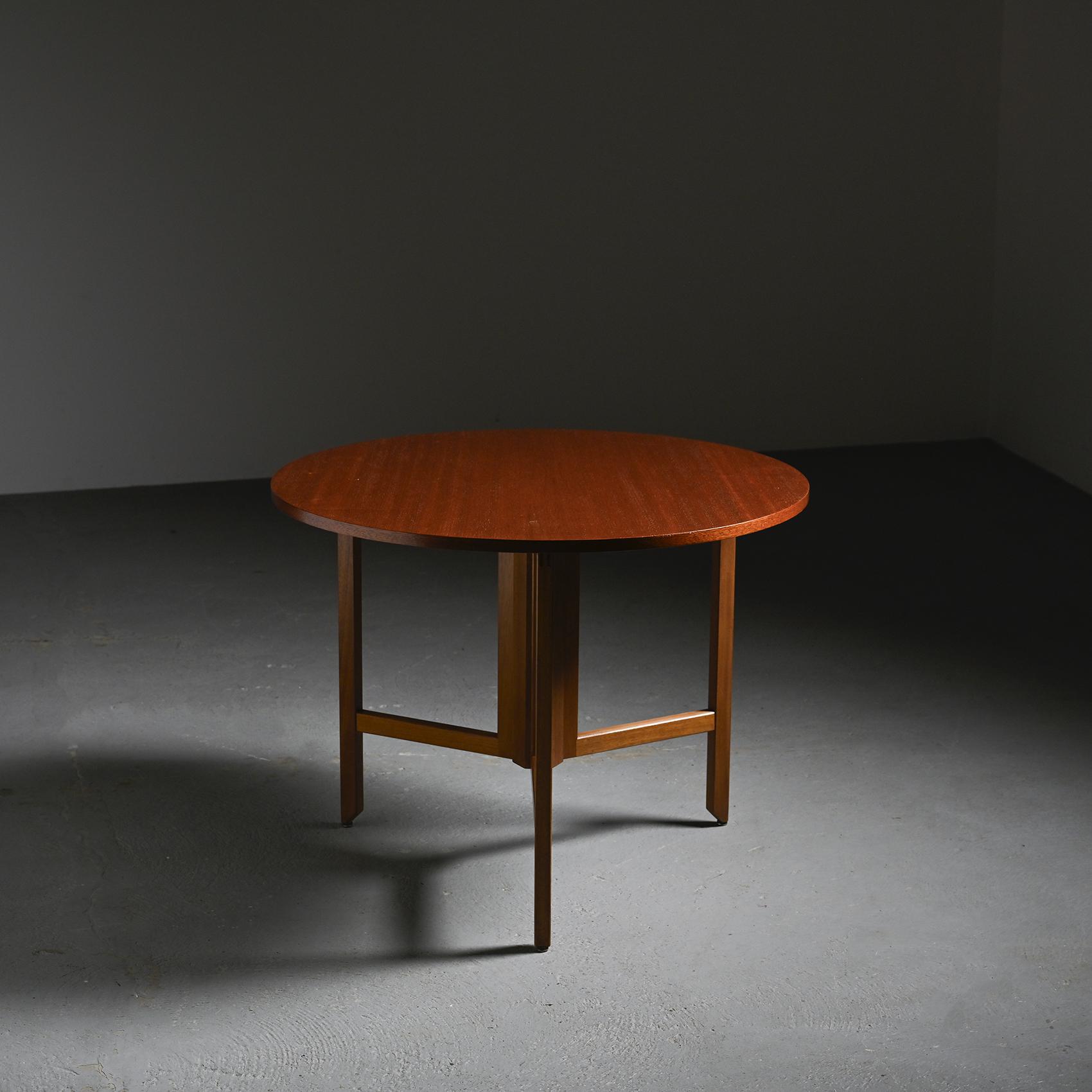 Round table in mahogany by André Sornay (1902-2000), the renowned Lyon-based cabinetmaker and a major figure of French modernist design, circa 1960.