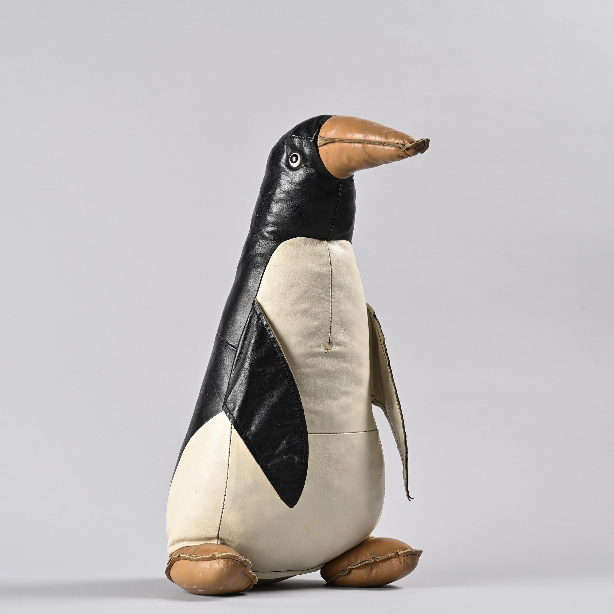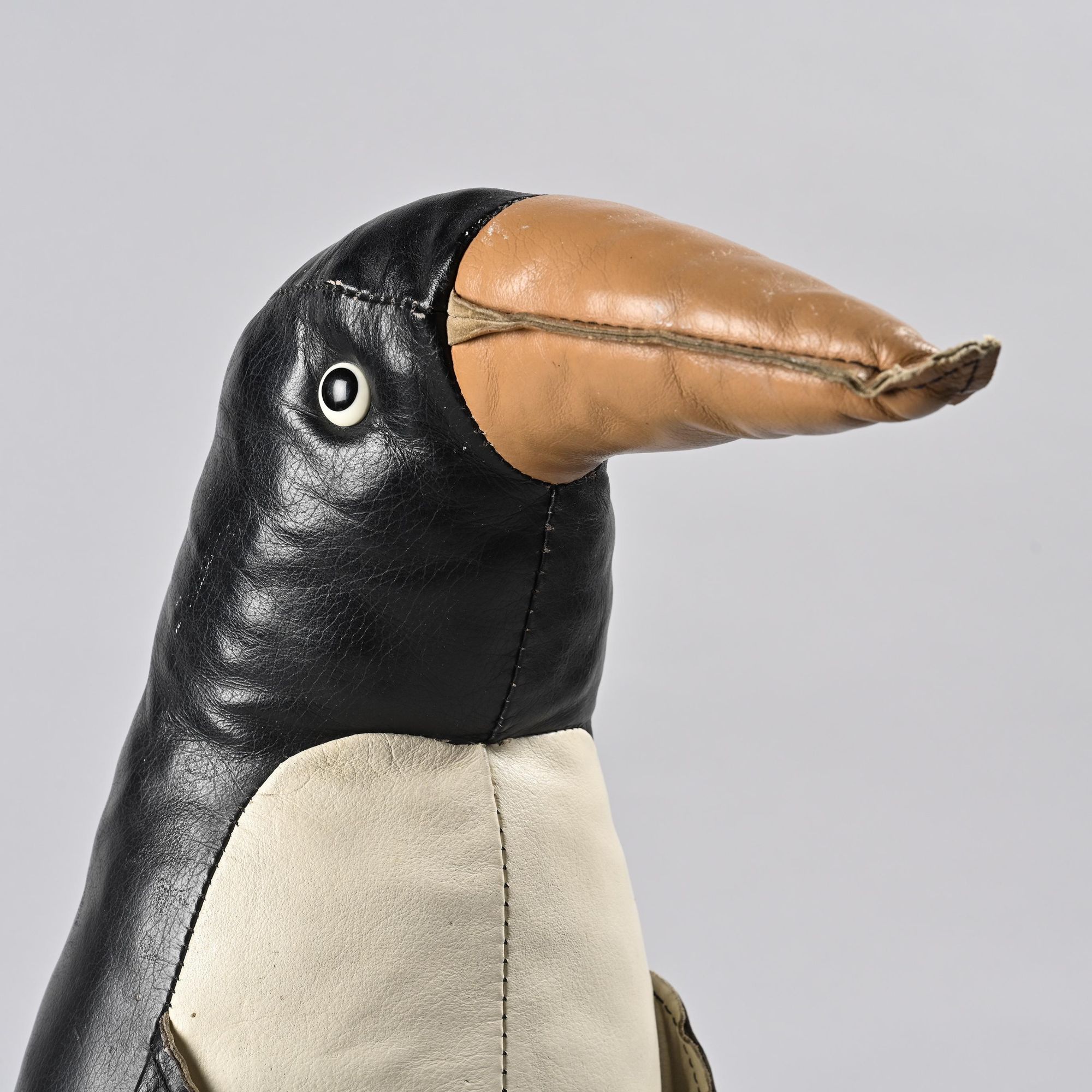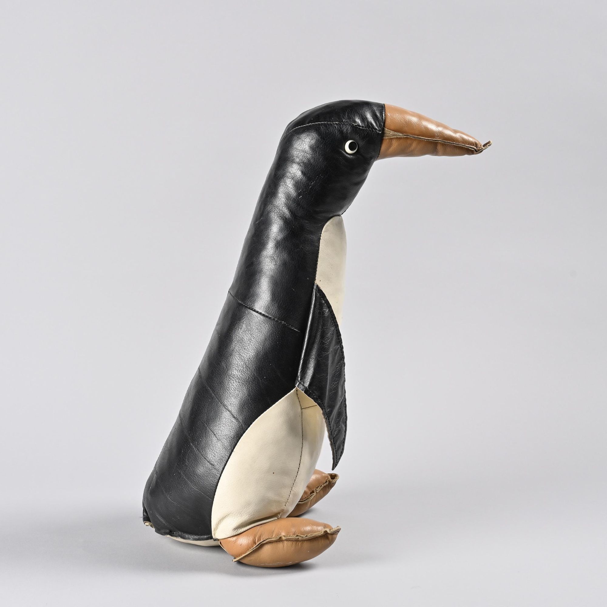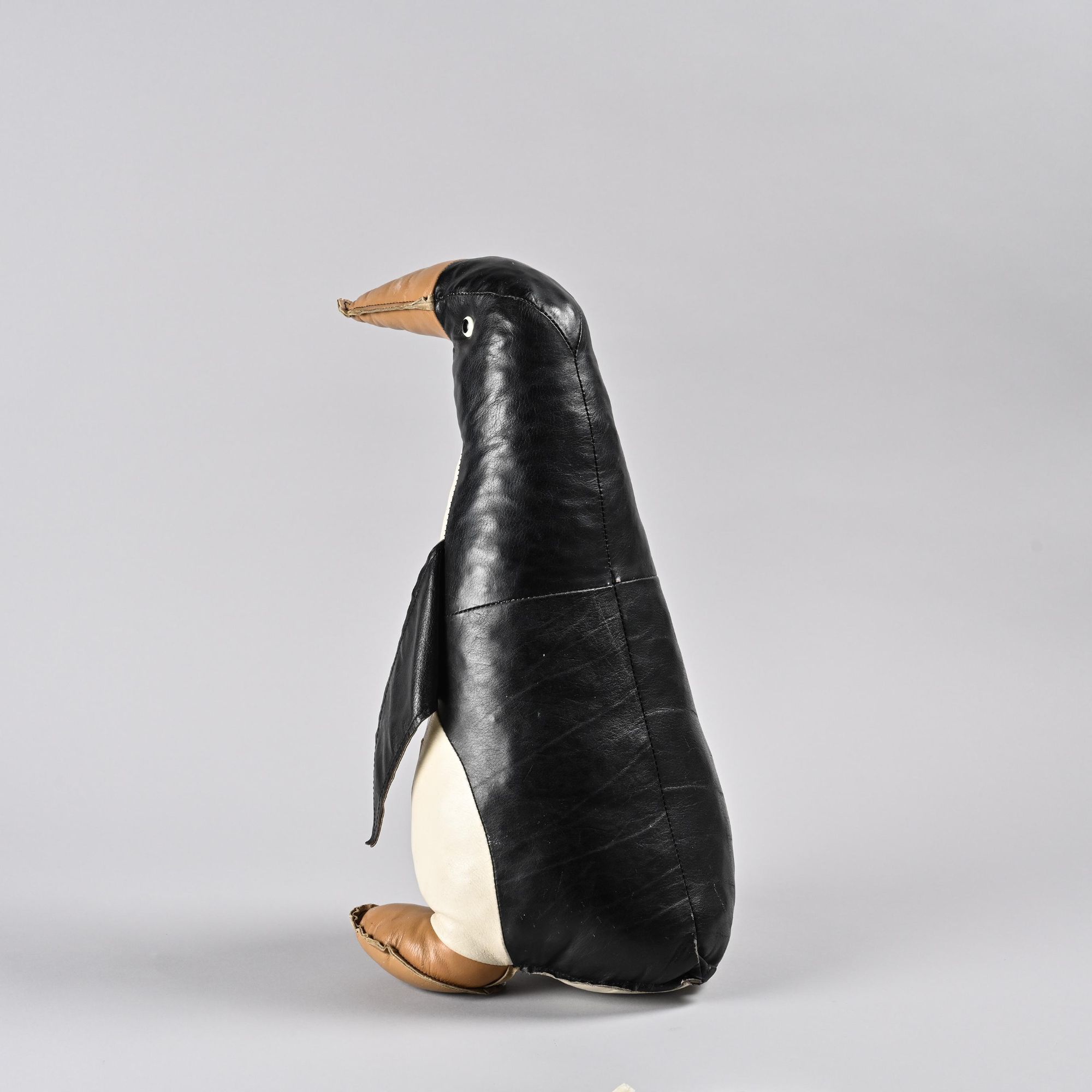 Pingouin décoratif en cuir cousu, réalisé en France dans les années 1970.